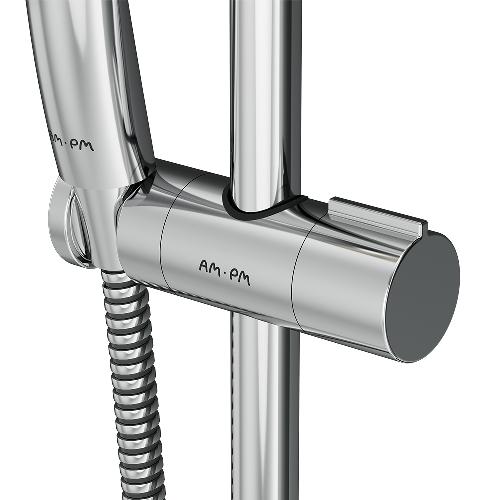 Продумані деталі для зручності використання: шарнірне з'єднання захищає душовою шланг від перекручування, регульований в трьох площинах тримач ручного душу, функція Rub & Clean для легкого очищення душових форсунок.