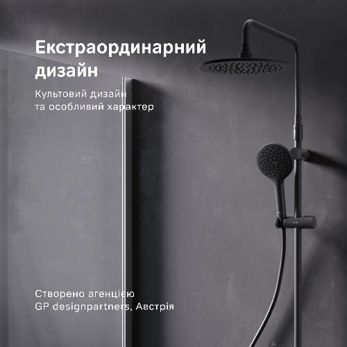 Тотальний дизайн в дії: всі деталі душової системи-від пропорцій ручного і верхнього душів до малюнка розташування форсунок на лійках. Преміальні розміри і продумані деталі: збільшений діаметр душових лійок (верхній душ 220 мм і ручний душ 120 мм) дозволить відчути переваги тропічного душу, тоді як збільшена довжина шланга 1750 мм забезпечить свободу рухів під час прийняття душу. Телескопічна поворотна штанга регулюється по висоті в діапазоні від 1030 до 1460 мм, забезпечуючи комфорт для людей будь-якого зросту, а кульовий шарнір в тримачі верхнього душа дозволяє регулювати кут його нахилу. Змішувач виконаний у вигляді полички. Чистий дизайн без зайвих деталей: перемикач розташований за ручкою налаштування температури і дозволяє змінювати джерело потоку води від ручної лійки і виливу до верхнього душу. |