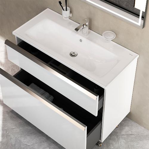 Меблі AM.PM X-JOY - сучасний європейський дизайн в стилі мінімалізм. Комплект меблів оснащений зручною і функціональною керамічною раковиною з глибокою чашею.