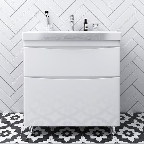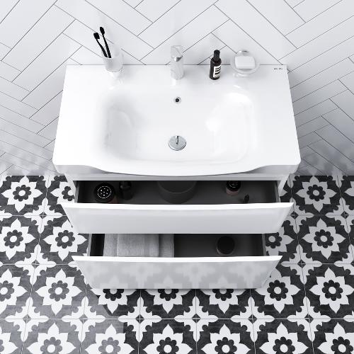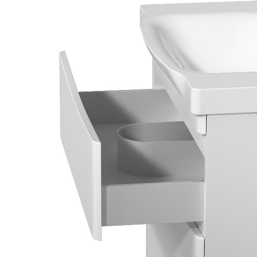 Витонченість у деталях: зручні інтегровані у фасад ручки ідеально повторюють вигин виступу раковини.
