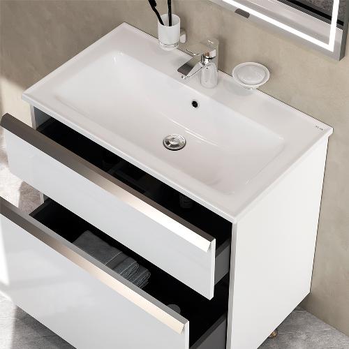 Меблі AM.PM X-JOY - сучасний європейський дизайн в стилі мінімалізм. Комплект меблів оснащений зручною і функціональною керамічною раковиною з глибокою чашею.