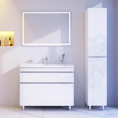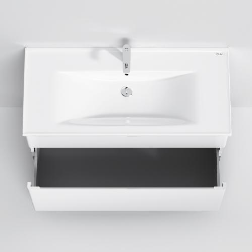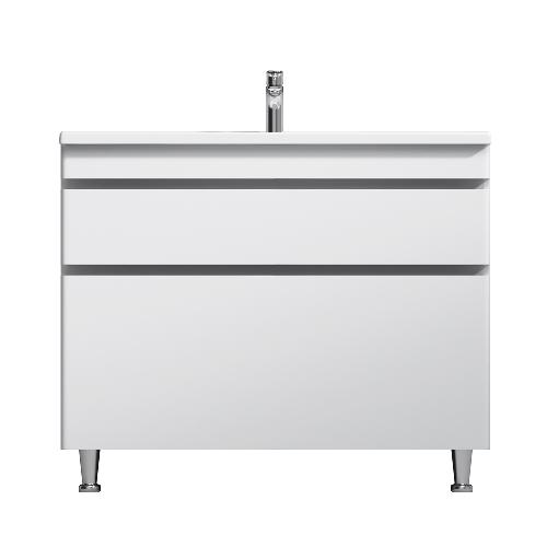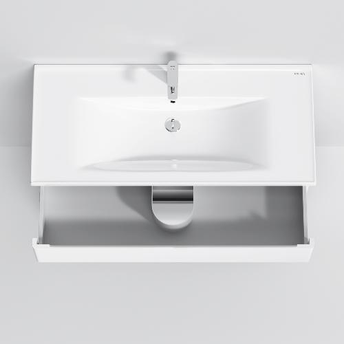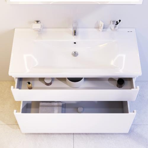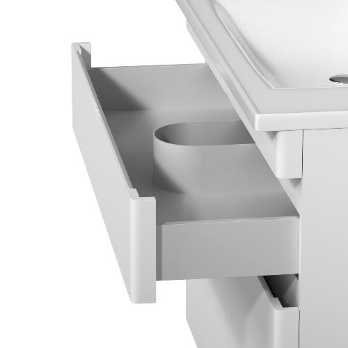 Новинка меблі для ванної Hit. Білі глянцеві фасади покриті екологічно чистими і довговічними поліакриловими емалями, які наносяться за спеціальною технологією фарбування в 7 шарів. Це забезпечує насичений колір протягом усього терміну служби (від 10 років). М'яке відкриття і закриття ящиків забезпечують напрямні прихованого монтажу з системою м'якого закривання soft close. Тумба комплектується раковиною з склоподібного фарфору, самого гігієнічного і вологостійкого матеріалу. Це найкомпактніша і функціональна раковина на ринку: проекція всього 42 см при максимальній глибині чаші!