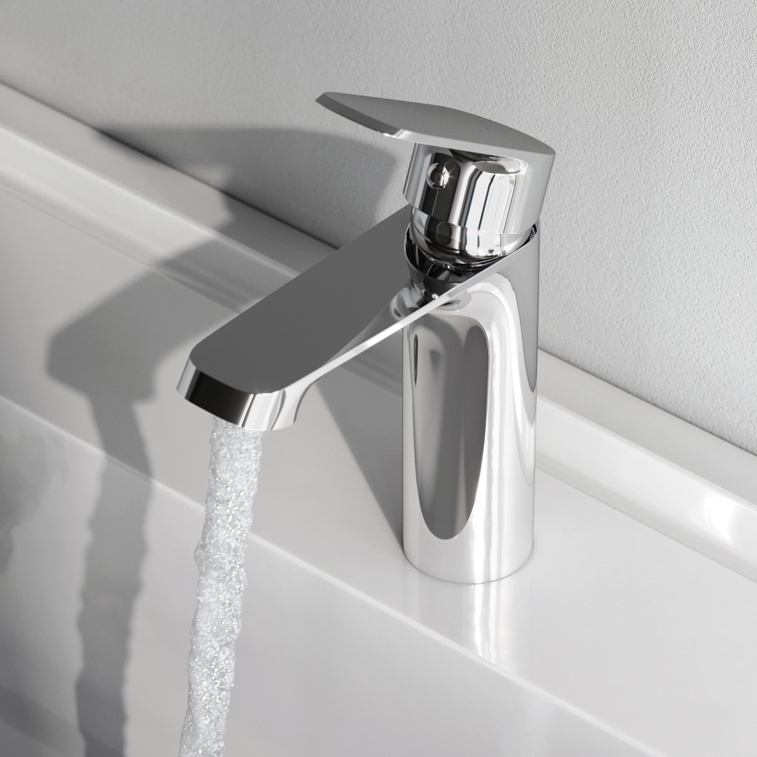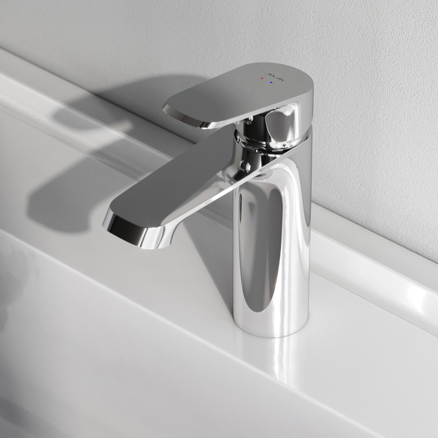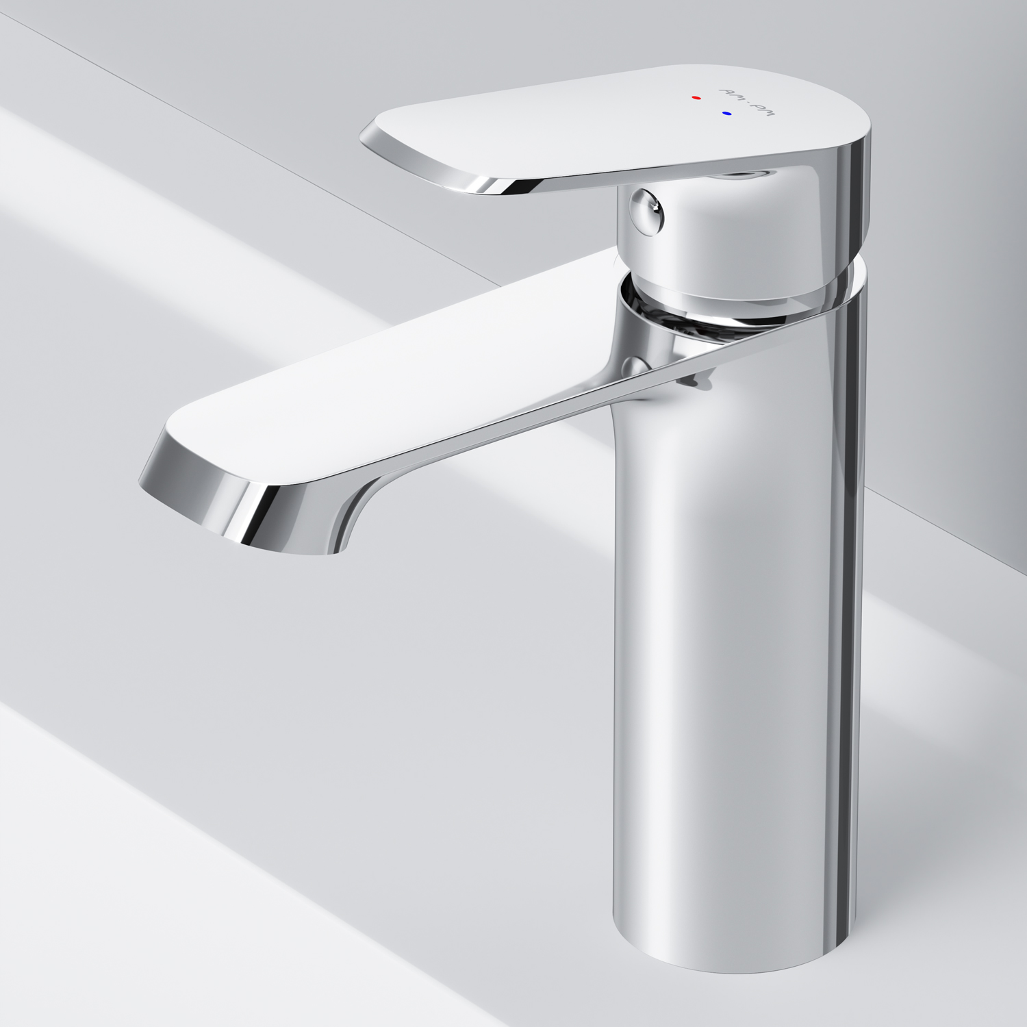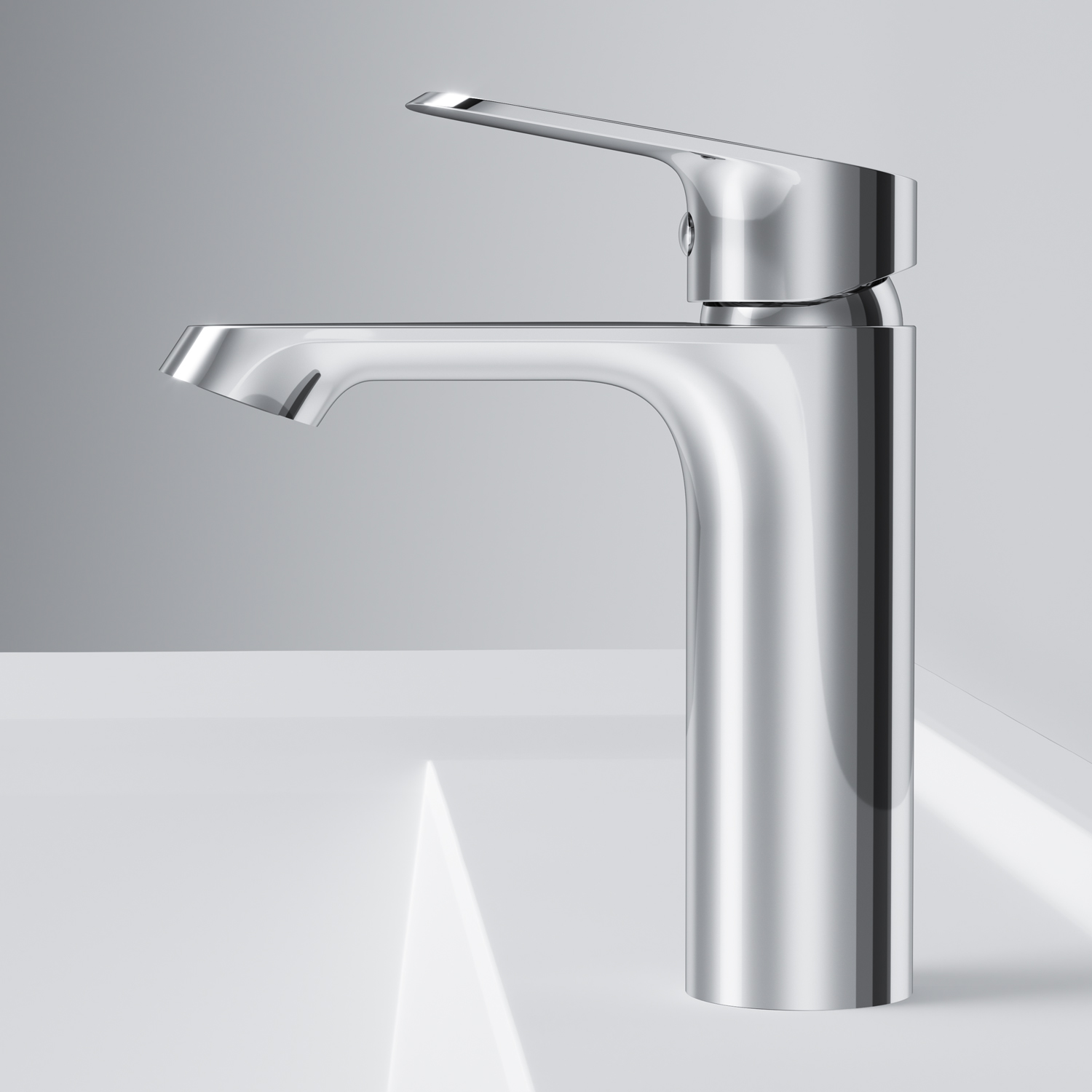 Бездоганний зовнішній вигляд: яскравий геометричний дизайн і витончений силует — змішувач для раковини Func стане справжньою окрасою сучасної ванної кімнати. Лаконічна ручка ідеально лежить у долоні, що значно полегшує керування та регулювання температури.