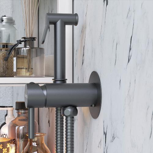 Чорний матовий змішувач з гігієнічним душем займає мінімум місця в санвузлі при цьому виконуючи свої функції. Матове покриття менше брудниться і виглядає стильно в будь-якому інтер'єрі.