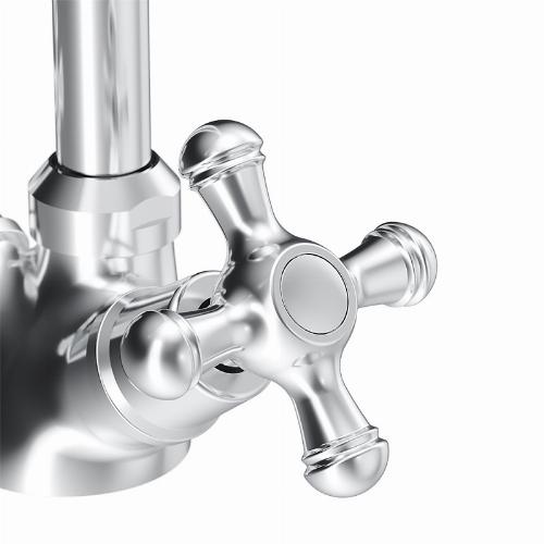 Змішувачі колекцій Retro представляють гармонійний союз ретельно вивіреного дизайну і кращих технологій Damixa. Вироби комплектуються стильними вентильними ручками, які стануть центром уваги у вашій ванній кімнаті. Продукти мають досконалу технічну базу: керамічні кран-букси, ручки з поворотом на 180 °, преміальні матеріали.