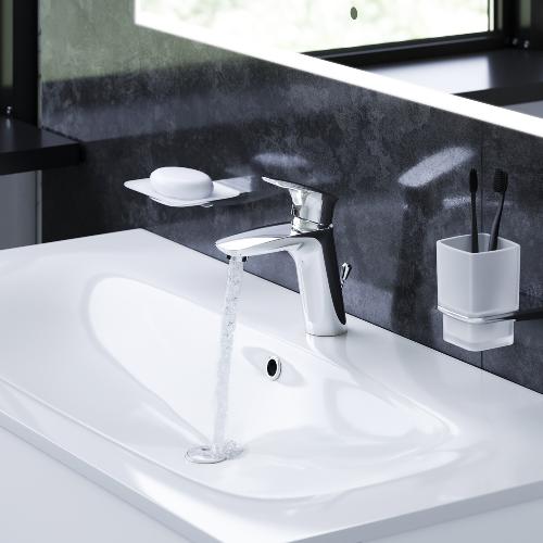Ергономічність: бездоганно продумана форма ручки ідеально лягає у долоню. Нахил і плавний вигин корпусу змішувача забезпечують зручність використання на високій раковині.