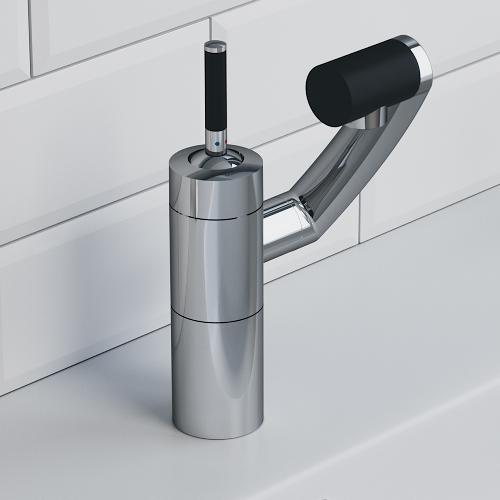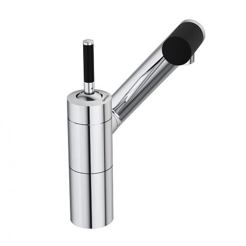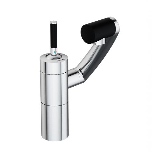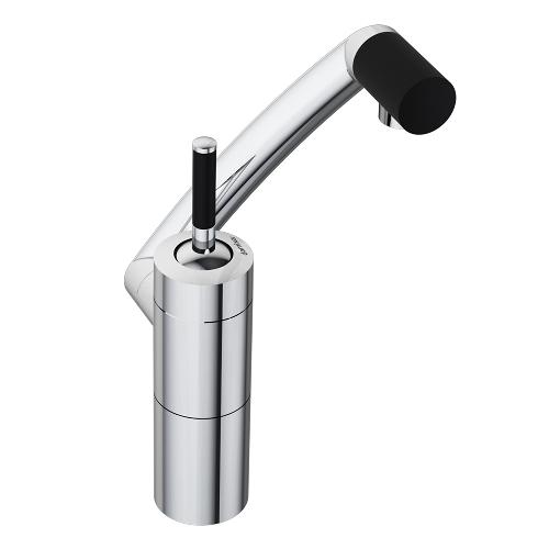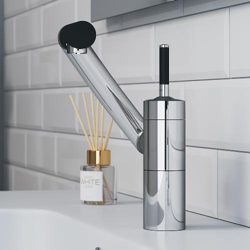 - Передовий дизайн: змішувач з хромованим корпусом та поворотним виливом оригінальної форми створює скульптурний силует і вражає функціональними рішеннями.
