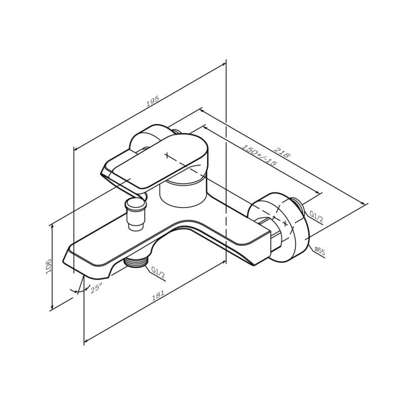 Змішувач для ванни і душу, чорный F9H10022 AM.PM Flash