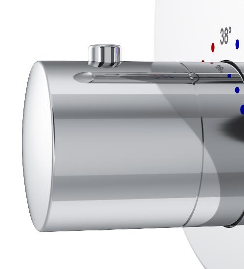 Термостатичний картридж з високочутливим термоелементом Vernet і швидкою реакцією на зміни температури або тиску у водопровідній мережі захищає від опіку навіть при раптовому відключенні холодної води.