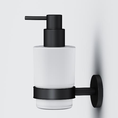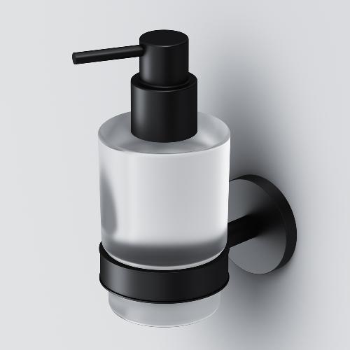 Стеклянный диспенсер для жидкого мыла с настенным держателем, черный