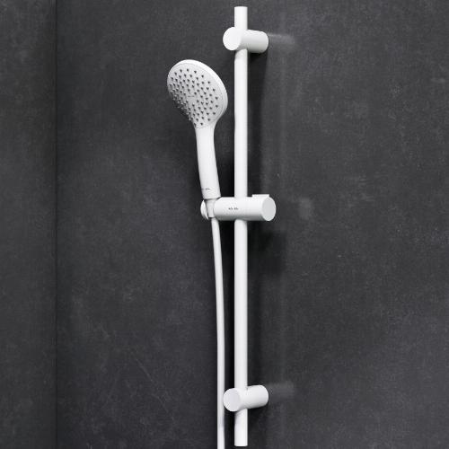 Продуманные детали для удобства использования: шарнирное соединение защищает душевой шланг от перекручивания, регулируемый в трех плоскостях держатель ручного душа, функция Rub&Clean для легкой очистки душевых форсунок. Один режим ручного душа.