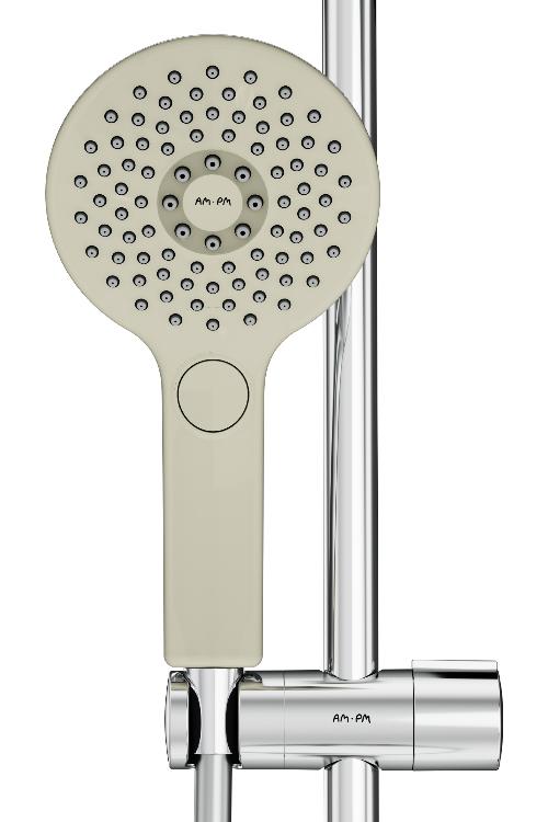 Минималистичный дизайн Hi-Tech; Эксклюзивный слайдер AM.PM: для фиксации необходимо всего пол-оборота; Три режима ручного душа: Spray, EnerJet, Spray + Massage; Удивительно тактильный ручной душ за счёт материала поверхности soft touch.