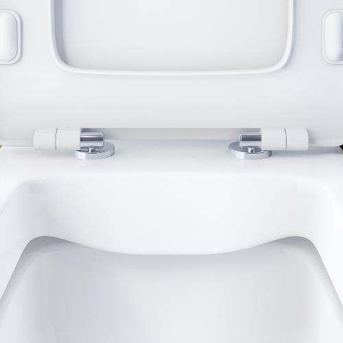 Трендовый дизайн - квадратная форма чаши - сделает вашу ванну стильной и уникальной. Гигиеничный безободковый смыв унитаза гарантирует идеальную чистоту благодаря отсутствию в чаше областей недоступных для уборки.
