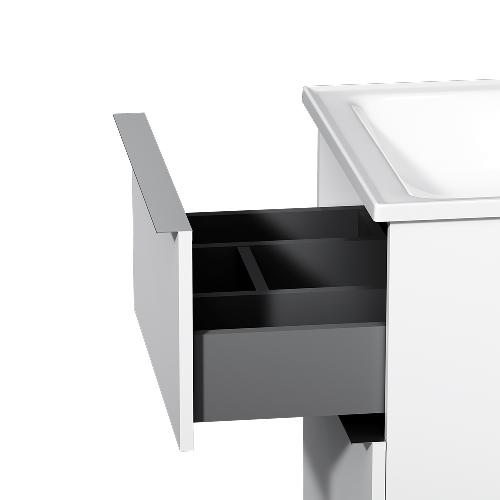 Мебель AM.PM X-JOY - современный европейский дизайн в стиле минимализм. Комплект мебели оснащен удобной и функциональной керамической раковиной с глубокой чашей. Максимально удобные интегрированные в фасад фрезерованные ручки. Трендовая комбинация белых глянцевых фасадов и вставок антрацит. Покрытие в 7 слоёв полиакриловыми эмалями защищает мебель от воздействия влаги и поддерживает первоначальный цвет продукта в течение всего срока службы. Подвесная конструкция смотрится эффектно и требует меньшего времени на уборку.