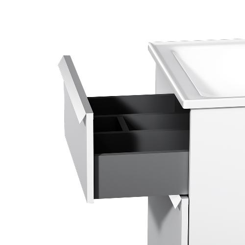 Мебель AM.PM X-JOY - современный европейский дизайн в стиле минимализм. Комплект мебели оснащен удобной и функциональной керамической раковиной с глубокой чашей. Максимально удобные интегрированные в фасад фрезерованные ручки. Трендовая комбинация белых глянцевых фасадов и вставок антрацит. Покрытие в 7 слоёв полиакриловыми эмалями защищает мебель от воздействия влаги и поддерживает первоначальный цвет продукта в течение всего срока службы. Подвесная конструкция смотрится эффектно и требует меньшего времени на уборку.