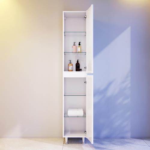Новинка мебель для ванной Hit. Белые глянцевые фасады покрыты экологически чистыми и долговечными полиакриловыми эмалями, которые наносятся по специальной технологии покраски в 7 слоев. Это обеспечивает насыщенный цвет в течение всего срока службы (от 10 лет). Мягкое открытие и закрытие дверей обеспечивают петли с доводчиками. Внутри установлены полки из стекла.