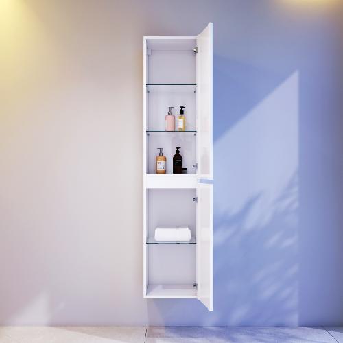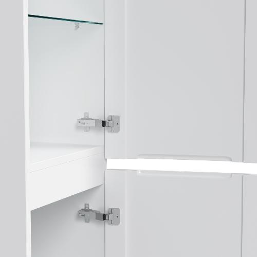Новинка мебель для ванной Hit. Белые глянцевые фасады покрыты экологически чистыми и долговечными полиакриловыми эмалями, которые наносятся по специальной технологии покраски в 7 слоев. Это обеспечивает насыщенный цвет в течение всего срока службы (от 10 лет). Мягкое открытие и закрытие дверей обеспечивают петли с доводчиками. Внутри установлены полки из стекла.