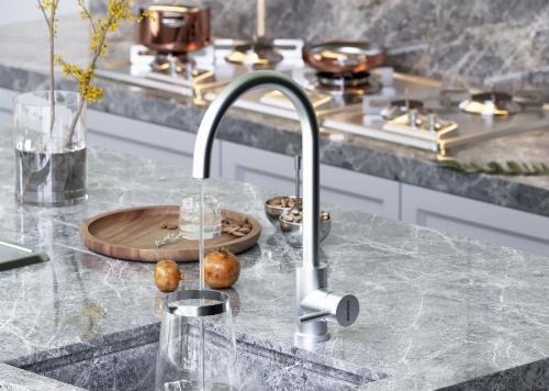 Если же Вам нужна обычная вода, смеситель управляется привычным способом. Также, конструкция, совмещающая в себе 2 в 1, экономит место и придаёт кухне опрятный вид без лишних элементов.
