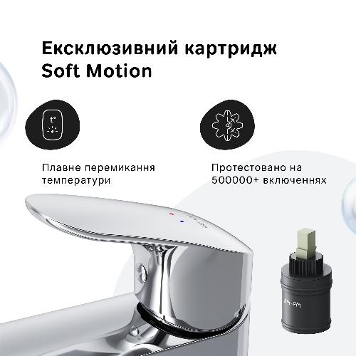 Керамічний картридж 35 мм SoftMotion, спеціально розроблений провідними німецькими інженерами для AM.PM, має приголомшливі експлуатаційні характеристиками, які доповнюють екстраординарний дизайн змішувача. Завдяки вивіреній внутрішній архітектурі, картридж витримує максимальну тестову температуру до 95⁰С і тиск до 35 атмосфер, а також забезпечує знижений рівень шуму.