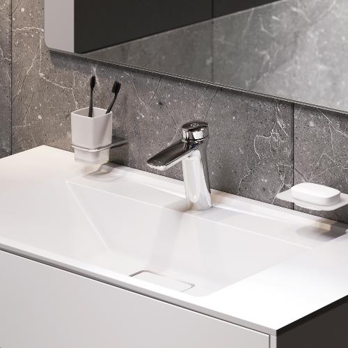 Впервые инновационный смеситель с уникальными технологиями в массовом сегменте; Интуитивная понятная система управления TouchReel для включения/выключения смесителя одним нажатием; Максимально простое управление температурой воды для тех, кто не хочет ничего настраивать; Идеальная геометрия, разработанная по стандарту SA (Smart Angle) – математические выверенное соотношение высоты смесителя, длины излива и наклона корпуса для удобного использования на умывальнике любого размера.