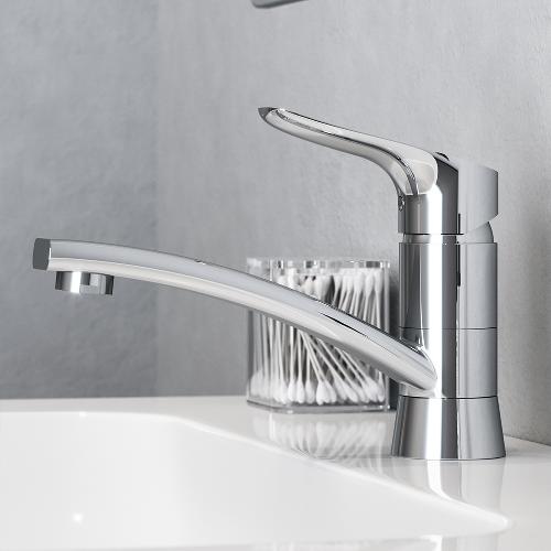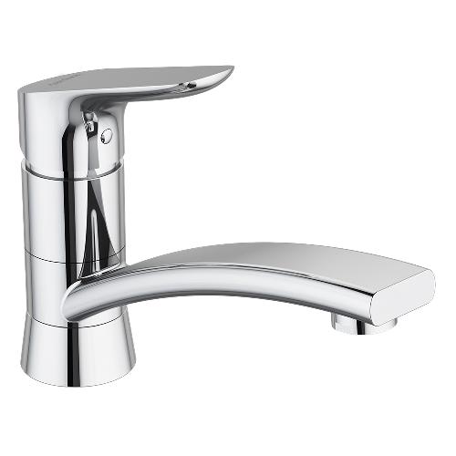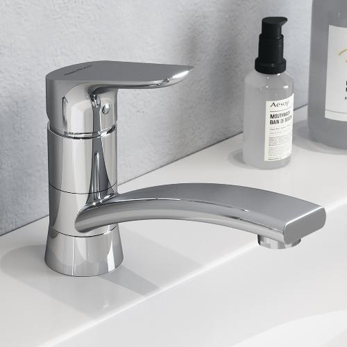 Простые геометрические формы и линии в совокупности могут созвать что-то необычайно притягательное. Смеситель для раковины имеет удлинённый излив для удобного пользования на раковинах любого размера и глубины.