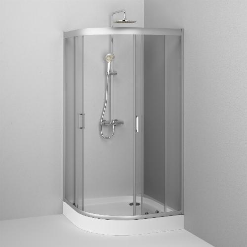 Система крепления профилей QuickFix - простой и быстрый монтаж душевого ограждения. Надежные хромированные двойные ролики – не менее 150 000 открываний. Прозрачное закаленное стекло толщиной 5 мм. Ручка из алюминия. Высота ограждения без поддона 1900 мм.