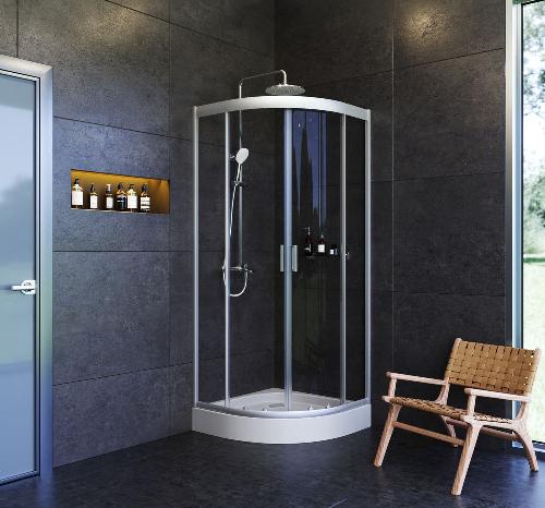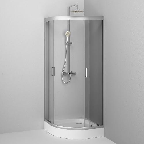 Система кріплення профілів QuickFix - простий та швидкий монтаж душового огородження. Надійні хромовані подвійні ролики – щонайменше 150 000 відкривань. Прозоре загартоване скло завтовшки 5 мм. Ручка із алюмінію. Висота огорожі без піддону 1900 мм.