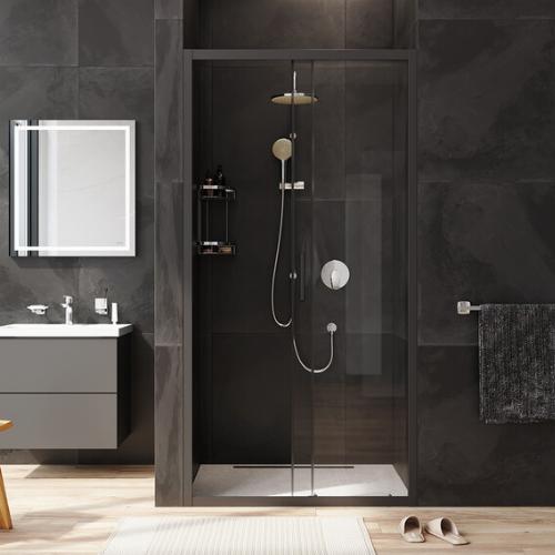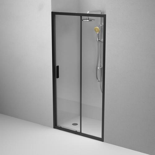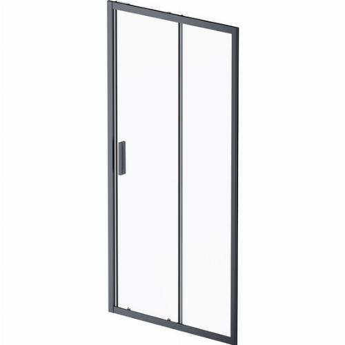 Двері душові 100х195, роздвижні, скло прозоре, профіль чорн мат