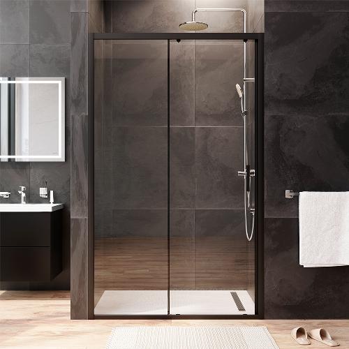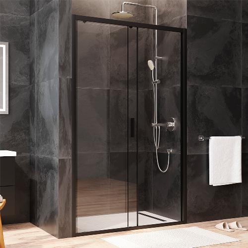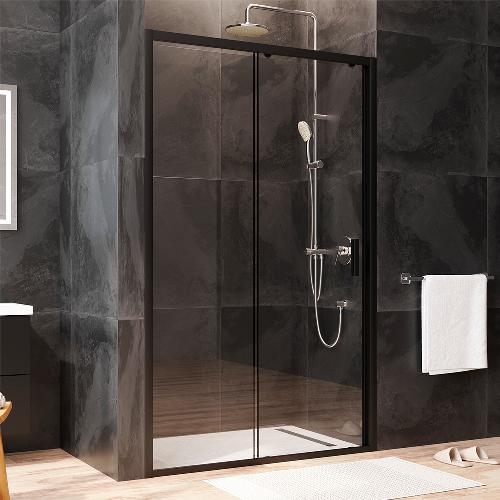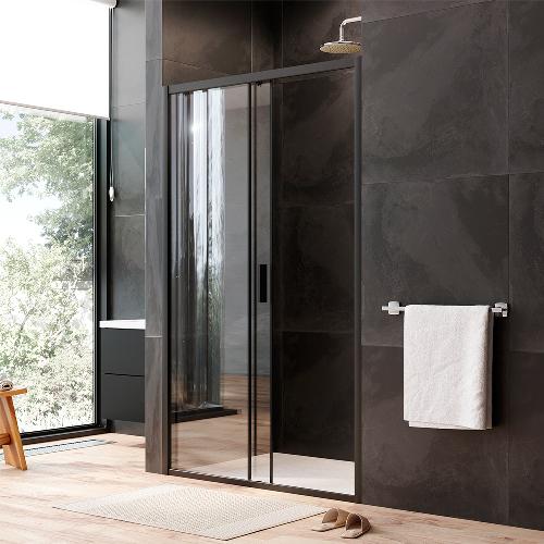 Двері душові 120х195, розпашні скло прозоре, профіль чорн мат W90UG-120-1S-195BT