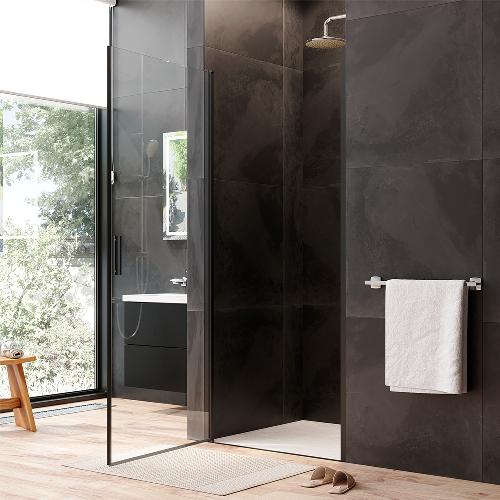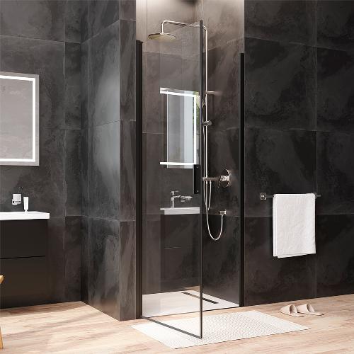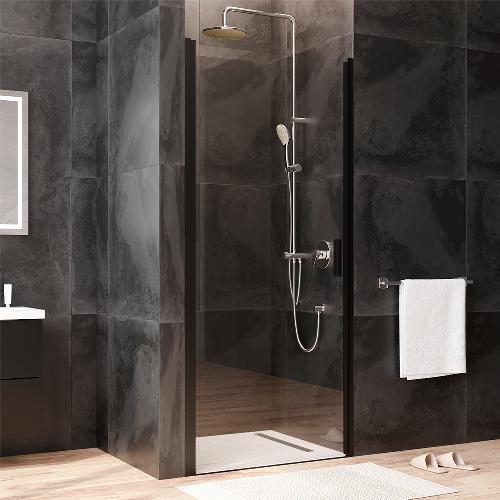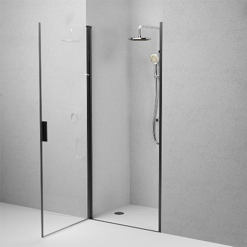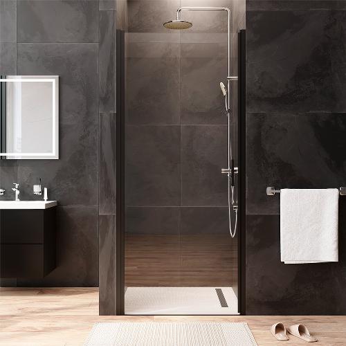 Двері душові 90х195, розпашні, скло прозоре, профіль чорн мат