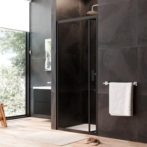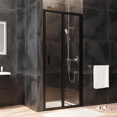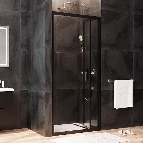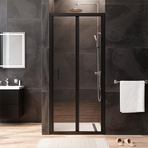 Двері душові 90х195, складні, скло прозоре, профіль чорн мат